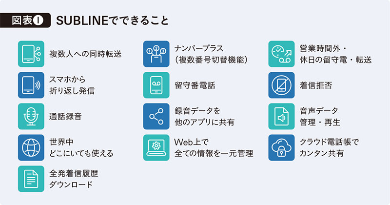 さらに別の企業では、「SUBLINE」を導入して以来、転送機能の活用で営業機会を逃すことがなくなり、業績アップにつながっている。昨年からは、1人が複数の番号を持つことも可能になった。プロジェクトごとに別番号にすればコスト管理につながり、社内の問い合わせ窓口と取引業者の窓口とを分ければ業務の可視化が進む。