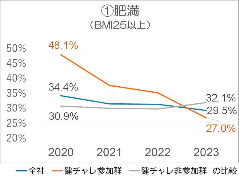 社員が禁煙や減量、継続的な運動など、生活習慣の見直しを楽しみながら取り組める、インセンティブ(目標達成祝金)を用いた健康増進プログラム「健康チャレンジ!(健チャレ)」を2021年度から実施。インセンティブを用いたことが行動変容の一助として有効であり、施策への参加率増加によって定期健康診断総合判定や肥満率に改善が見られたという。