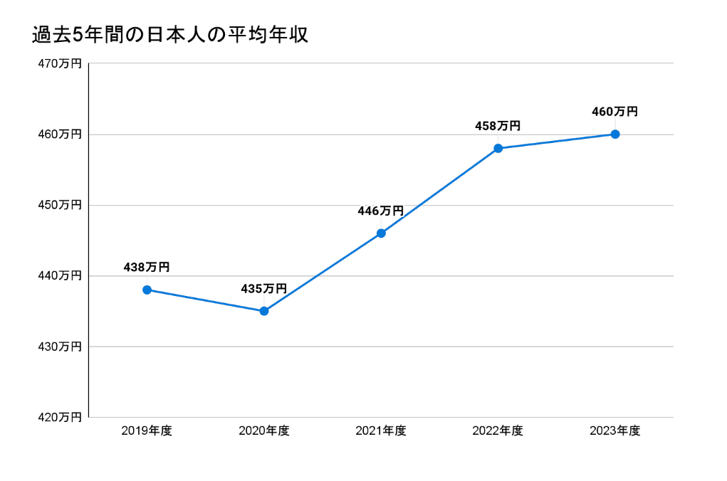 国税庁が9月に公表した2023年分の「民間給与実態統計調査」の報告によると、給与所得者の2023年における1年間の平均給与は460万円で、3年連続増加。
